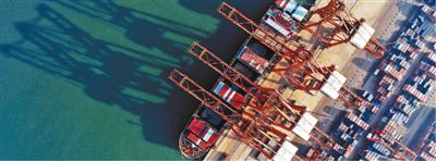 1月16日,一艘轮船靠泊在唐山港京唐港区集装箱码头装货。记者从河北省唐山市海洋口岸和港航管理局获悉,2021年唐山港货物吞吐量达72240万吨,同比增长2.81%。