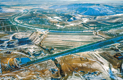 1月25日,雪后的内蒙古乌兰察布景色迷人。图为一列客运列车行驶在乌兰察布卓资县哈力盖图段。