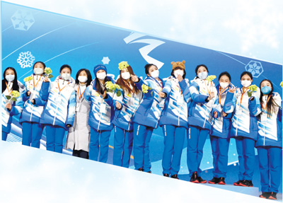 1月27日,北京“鸟巢”附近的北京赛区冬奥会颁奖广场上,志愿者和工作人员在参加颁奖流程演练。 新华社记者 李紫恒摄