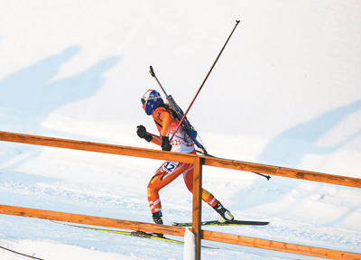 2月5日,中国选手孟繁棋在比赛中。当日,冬季两项混合接力4×6公里比赛在国家冬季两项中心进行。 |