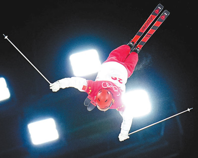 2月5日,中国选手赵洋在比赛中。当日,自由式滑雪男子雪上技巧资格赛第二轮比赛在张家口赛区云顶滑雪公园进行。 |
