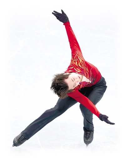 2月6日,中国选手金博洋在比赛中。当日,花样滑冰团体赛男子单人滑自由滑比赛在首都体育馆进行。 |
