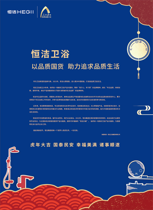 作为卫浴新国货品牌代表,2021年,恒洁以质取胜,进入更多中国家庭,打造高品质卫浴生活。