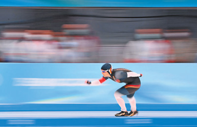 在女子3000米赛道上,当22岁的中国选手阿合娜尔·阿达克冲过终点,在她身后,将近五旬的德国选手克劳迪娅·佩希施泰因咬紧牙关、甩开手臂,依然奋力向前滑行。