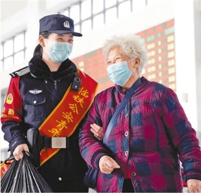霍州车站派出所民警在为一名老年旅客热情服务。 武 洋摄(人民视觉)