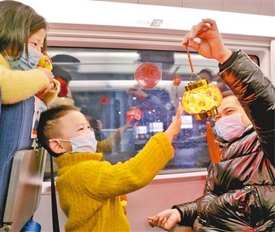 2月13日,中国铁路上海局集团公司杭州客运段乘务人员在G7665次列车上开展丰富多彩的制灯笼、猜灯谜活动,与旅客一起共迎元宵佳节。