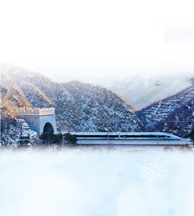 雪后初晴的居庸关长城脚下,一列从北京清河站开出的冬奥智能动车组呼啸着驶向河北张家口太子城站。 |