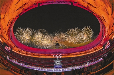 2月20日晚,北京第二十四届冬季奥林匹克运动会闭幕式在国家体育场举行。这是焰火表演。