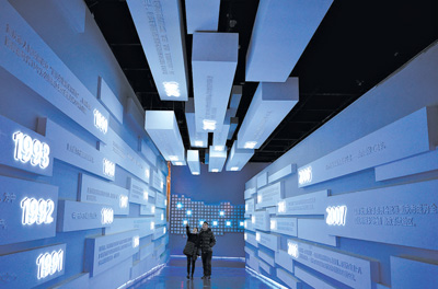 重庆工业博物馆依托原重钢原型钢厂部分工业遗存改造而成,是重庆工业文化博览园的核心部分。图为博物馆一展厅内,游客正在参观。 |