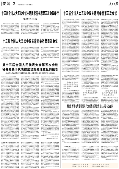 十三届全国人大五次会议主席团常务主席第三次会议举行