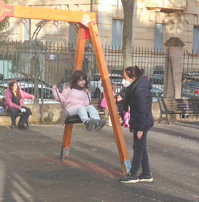意大利罗马,家长带着孩子在公园玩耍。 |