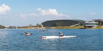 富阳水上运动中心位于杭州市富阳区北支江南岸,为杭州亚运会赛艇、皮划艇项目以及亚残运会赛艇、皮划艇项目比赛场地。其中,赛艇、皮划艇(静水)项目场地总建筑面积约6.4万平方米,皮划艇(激流回旋)项目场地总建筑面积约3700平方米,观众席位数约3000个。 |