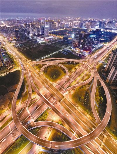 近年来,江西省赣州市发挥交通基础设施建设的带动作用,总长约53.7公里的6条高架快速路相继投入使用,国省干道提档升级,“四好农村路”建设快速推进,有力助推赣州革命老区高质量发展。图为3月28日,赣南大道快速路立交桥鸟瞰。