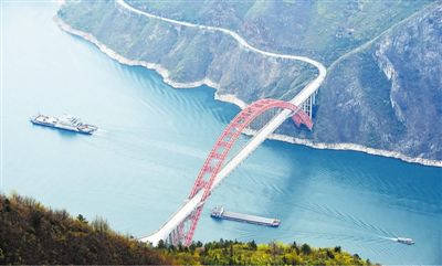 3月31日,重庆巫山县,轮船从长江大桥下驶过。近年来,位于长江三峡库区的巫山县加大交通基础设施建设力度,建成长江大桥、龙门大桥、桂花大桥、G42高速大宁河特大桥、郑万高铁大宁河大桥,昔日天堑变通途,“水陆空铁”立体交通枢纽逐渐形成。