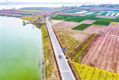 山西省运城市立足打造黄河流域(运城段)生态保护和高质量发展示范区,持续开展修复沿岸植被、治理整顿沙场等专项行动,同时加大沿岸景区的改造提升力度,实现黄河沿岸生态的有效改善,为当地高质量发展提供了有力抓手。图为运城市平陆县境内的沿黄公路旁繁花似锦,美不胜收。