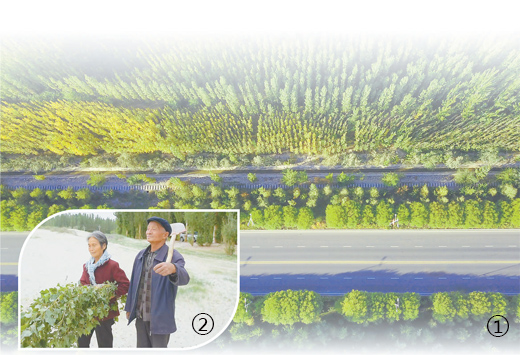 图①:茂盛的沙漠林带。 |