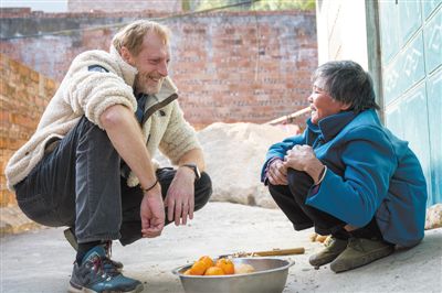2021年12月22日,尼克(左)与乍洞村村民交流。 |