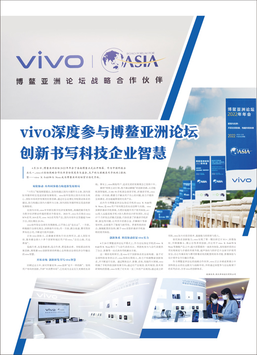 4月20日,博鳌亚洲论坛2022年年会于海南博鳌正式拉开帷幕。作为中国科技企业之一,vivo以论坛战略合作伙伴身份深度参与盛会,生产的X旗舰系列手机的2款机型——vivo X Fold和X Note成为博鳌亚洲论坛官方指定手机。