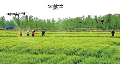 4月20日,安徽六安市裕安区江家店镇,航空植保专业服务队的无人机操作员在为小麦进行飞防作业。连日来,江家店镇在做好疫情防控的同时,引导农民积极投入春耕生产,组织志愿者运用机械化手段提高作业效率。
