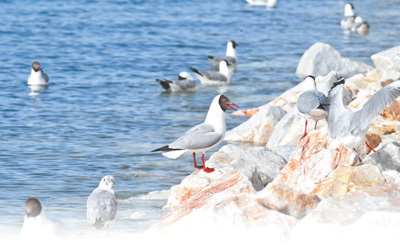 栖息在青海湖国家级自然保护区的棕头鸥。 |
