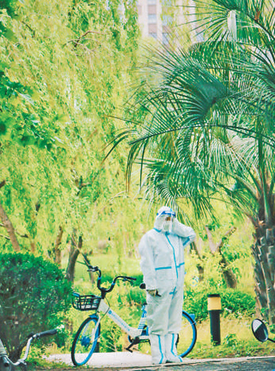 方一彬是党员志愿者,负责为江湾校区18号楼发放一日三餐,召集同学们做核酸采样,晚间到各宿舍收集垃圾,“敲开寝室门,同学们的一声感谢,让我们更有动力!”