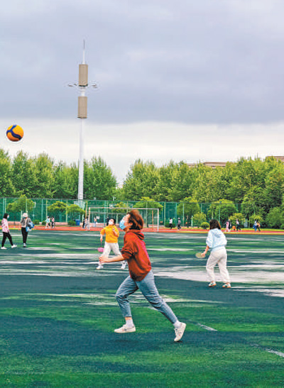 4月25日,江湾校区操场上,同学们在锻炼身体。 |