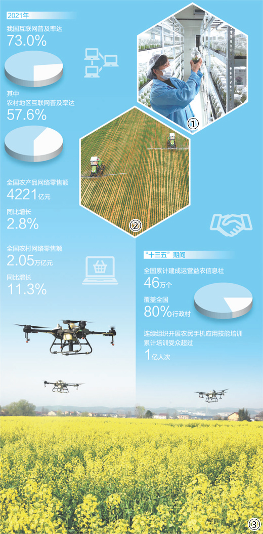 数字技术在农村的广泛应用,不断催生新模式新业态,为农业农村现代化注入新动能。“十四五”规划和2035年远景目标纲要提出,加快发展智慧农业,推进农业生产经营和管理服务数字化改造。今年中央一号文件对大力推进数字乡村建设进行了全面部署。