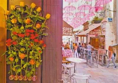 5月13日至15日,法国南部小城格拉斯举行第五十届玫瑰花节,街头巷尾被盛放的玫瑰花和2800顶粉红伞装饰。拥有“世界香水之都”之称的格拉斯特别适合蔷薇、茉莉等香水原材料的栽培,拥有着众多的香水博物馆、试验室以及生产厂。图为13日在格拉斯拍摄的街头一景。