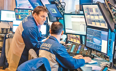 由于市场担忧美联储激进加息和美国经济可能陷入衰退,纽约股市三大股指6月13日大幅下跌。截至当天收盘,道琼斯工业平均指数比前一交易日下跌876.05点,收于30516.74点,跌幅为2.79%;标准普尔500种股票指数下跌151.23点,收于3749.63点,跌幅为3.88%;纳斯达克综合指数下跌530.80点,收于10809.23点,跌幅为4.68%。图为当天,交易员在美国纽约证券交易所工作。
