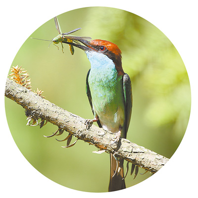 观测海南鳽的时候,陈志高还意外发现国家二级保护鸟类——斑头大翠鸟的踪影。由于斑头大翠鸟的种群数量连年下降,多地观鸟爱好者都难觅其踪迹,九连山更是多年不曾记录到。陈志高的观测记录,让爱鸟人士放宽了心——原来斑头大翠鸟并未绝迹。斑头大翠鸟外形靓丽,在九连山一经现身,就吸引了众多观鸟者前来一睹芳容,成了九连山的又一块“招牌”。