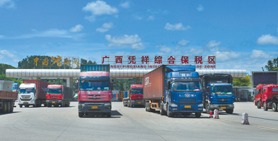 广西壮族自治区崇左市,运货车辆行驶在凭祥综合保税区。 |
