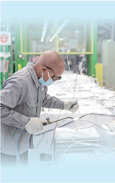 2022年6月1日,当地员工在南非开普敦海信南非工业园的冰箱生产线上工作。 |