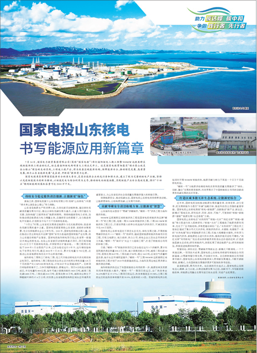“十四五”时期,山东省把发展清洁能源作为优化能源结构、促进绿色低碳发展的重中之重。国家电投紧紧围绕山东省委、省政府决策部署,充分发挥能源央企主力军作用。2021年,国家电投核能总部入鲁,旨在推动以自主核电技术品牌“国和”系列为基础的国家核能产业发展,助力山东建设核能产业强省。国家电投海阳核电项目是山东省第一座建设并商运的核电站,也是山东省新旧动能转换重点项目,项目规划建设6台百万千瓦级核电机组,并预留两台扩建余地。一期工程两台机组于2019年1月全面投产以来,已安全稳定运行3年半,运行绩效指标处于世界优秀行列,截至2022年7月25日,累计发电量为752亿度,在推动山东省能源结构优化中作出积极贡献。
