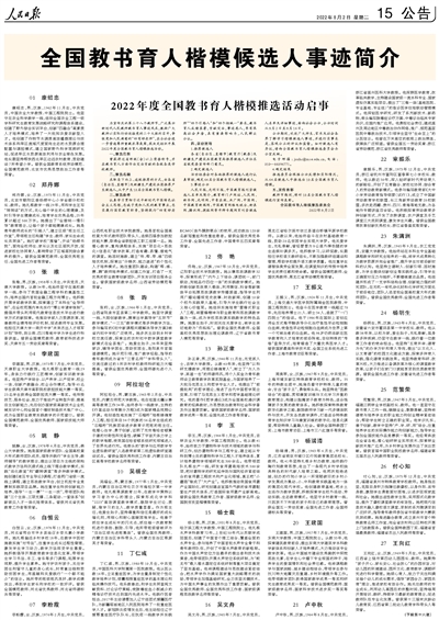 2022年度全国教书育人楷模推选活动启事