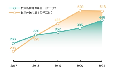 2016年,甘肃外送电总量为156.02亿千瓦时,其中新能源66.23亿千瓦时;2021年,全省外送电总量为517.55亿千瓦时,其中新能源174.53亿千瓦时。5年来,通过祁韶特高压线路,甘肃累计外送电量883.96亿千瓦时,其中新能源达291.38亿千瓦时。目前,除了祁韶特高压线路,甘肃省还在积极推动建设“陇电入鲁”“陇电入浙”等工程,进一步提升跨区跨省输电能力。