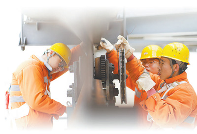 为了展示他们对这位“伙伴”的熟络,管魁更一口气报出一连串数据:“大桥全长5360米,有144个桥孔、14.4万多套高强度螺栓……”他喜欢钻研业务,大桥设备复杂,给他提供了学习锻炼的机会。比如,桥梁上那么多螺栓,密密麻麻,管魁更一眼就能看出螺栓是否松动、锈蚀,“火眼金睛”名不虚传。