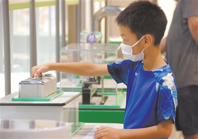 日前,“中国流动科技馆”云南红河个旧站巡展在个旧市博物馆内举行,小朋友在体验科普装置。