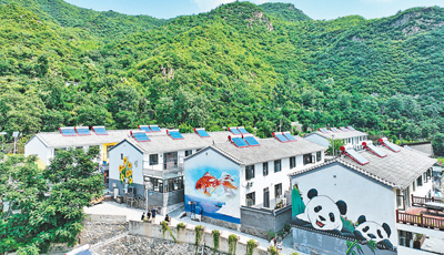 北京门头沟区妙峰山镇岭角村实施改造工程,村民生活环境焕然一新。岭角村着力提升乡村整体风貌,发展文旅产业带动村民增收致富。图为岭角村村民房屋外墙上的彩绘。