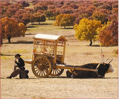 内蒙古自治区兴安盟科尔沁右翼中旗代钦塔拉五角枫保护区内,一名牧民在拉琴。 |