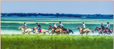 内蒙古自治区兴安盟科尔沁右翼中旗新佳木草原,牧民自发举办的小型那达慕赛马活动。 |