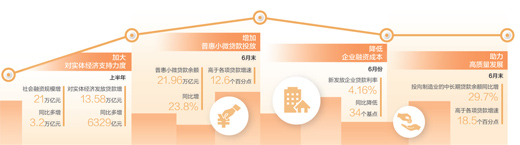 降低存款准备金率、加力帮扶中小微企业、创设结构性货币政策工具……今年以来,我国多措并举加大金融支持力度,全力稳经济增长、稳市场主体,有效支撑了实体经济健康发展。金融持续发力,为企业发展带来怎样的帮助?下半年,金融服务实体经济会有哪些着力点?记者进行了调查采访。