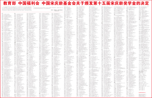 为了全面贯彻党的教育方针,落实立德树人根本任务,培育和践行社会主义核心价值观,加强和改进未成年人思想道德建设,大力弘扬宋庆龄的崇高精神,为中小学生树立可亲、可信、可学的榜样,根据《教育部办公厅关于第十五届宋庆龄奖学金评选工作的通知》(教基厅函〔2021〕35号),经各省级教育行政部门推荐,宋庆龄奖学金办公室严格评审,教育部、中国福利会和中国宋庆龄基金会决定向李心然等1542名学生颁发第十五届宋庆龄奖学金,向西藏自治区教育厅基础教育处等5家教育行政部门颁发第十五届宋庆龄奖学金优秀组织奖。