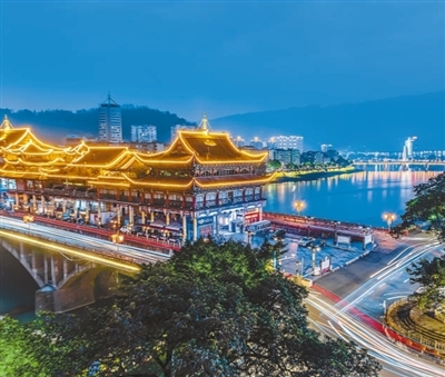 图为雅安青衣江廊桥夜景。 |