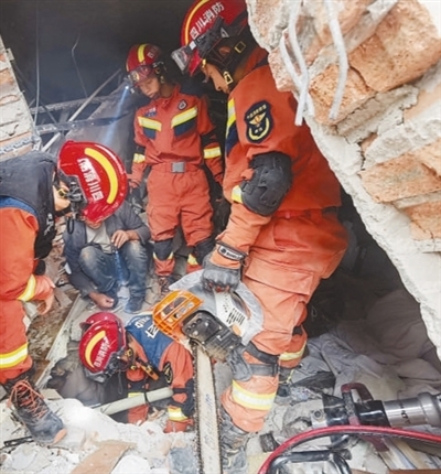 9月5日17时16分,海螺沟景区消防救援大队对位于磨西镇老街一酒店二楼的被困群众展开营救。消防救援人员破拆加固建筑废墟、安全评估现场环境,并对废墟中的障碍物进行清理,经过紧张救援,被困群众被成功救出。 |