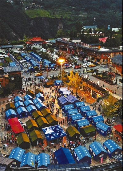 9月5日18时20分,天色渐暗,甘孜藏族自治州泸定县磨西镇临时安置点亮起了震后的第一盏灯。 |