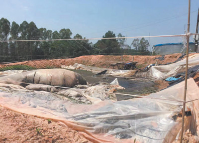 广东廉江市河唇镇长岗岭村北侧一年前建起一座禽类养殖场,约3000平方米。该养殖场随意排污,蚊虫滋生,且露天粪池臭气四溢(见图),方圆1公里都能闻到,严重影响了村民正常生活和居住环境。每到下雨天,养殖场粪便就被直接冲入下水沟,污染附近水源。此外,该养殖场建设时占用了白坟岭林地,相关硬化设施对周边生态环境造成破坏。