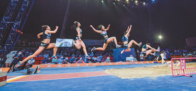 9月17日晚,中国田径街头巡回赛北京站比赛在五棵松冰上中心广场举行。张景强和郭思佳分别获得男子、女子跳远比赛的冠军。