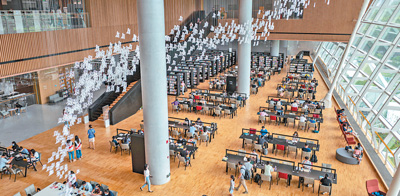 9月18日,市民在上海图书馆东馆“阅读广场”看书、学习。