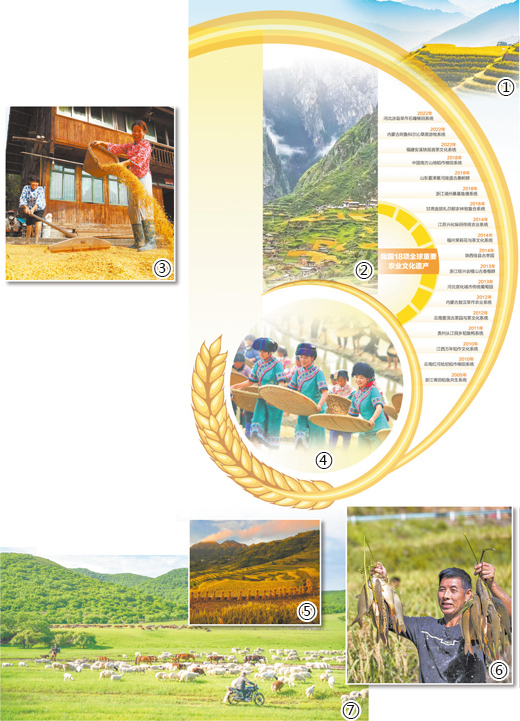 穿越悠悠岁月,农耕文化源远流长。18项全球重要农业文化遗产,见证沧海桑田,蕴藏古人智慧,镌刻着中华民族的精神追求,融生态美、农业美、人文美为一体。此外,农业文化遗产还在保障粮食安全、保护种质资源、涵养生态、传承文化上发挥着重要的功能价值,需要在保护中发展、在发展中保护。各地区各部门在保留传统风貌、传统文化的基础上,适度发展生态农业、旅游休闲、科普研学等新产业新业态,开拓农业多种功能,促进农业一二三产融合,正为全面推进乡村振兴注入新动能。
