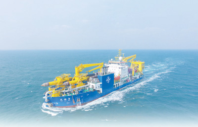 “天鲲号”,首艘由我国自主设计建造的亚洲最大自航绞吸挖泥船。